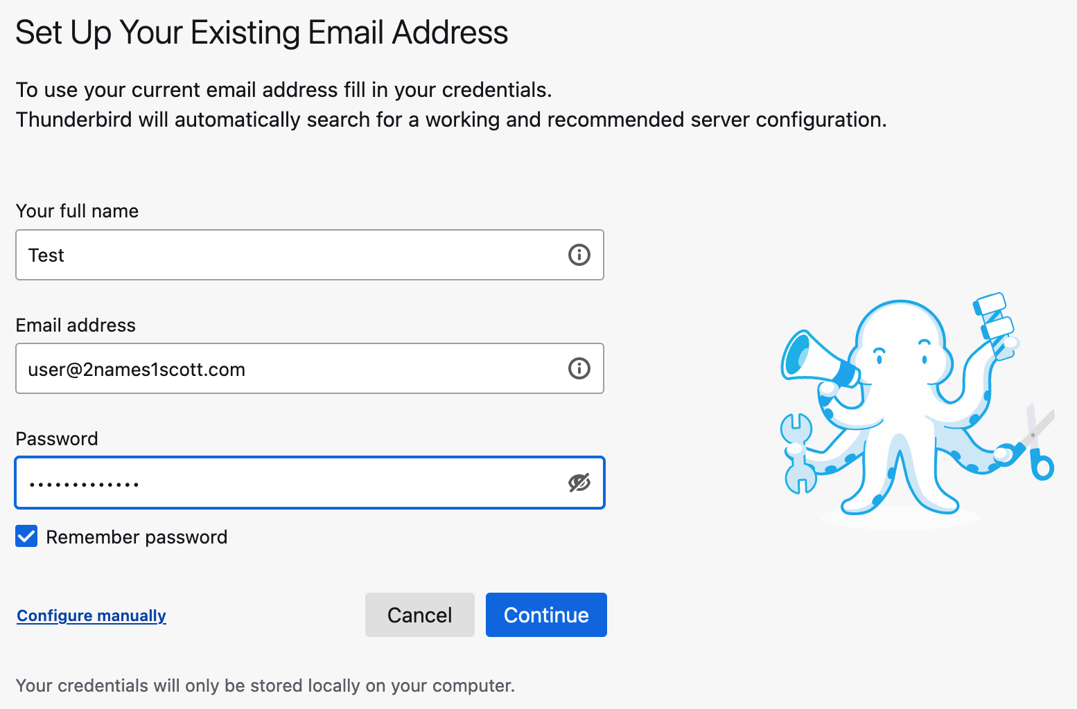 Enter your name, email address and password for the account: